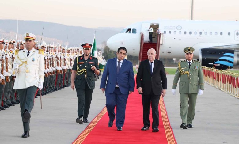 استقبل رئيس الجمهورية، السيد عبد المجيد تبون، اليوم، بمطار هواري بومدين الدولي، رئيس المجلس الرئاسي الليبي، السيد محمد المنفي، الذي حل بالجزائر للمشاركة في الطبعة الرابعة لمعرض التجارة البينية الإفريقية.
